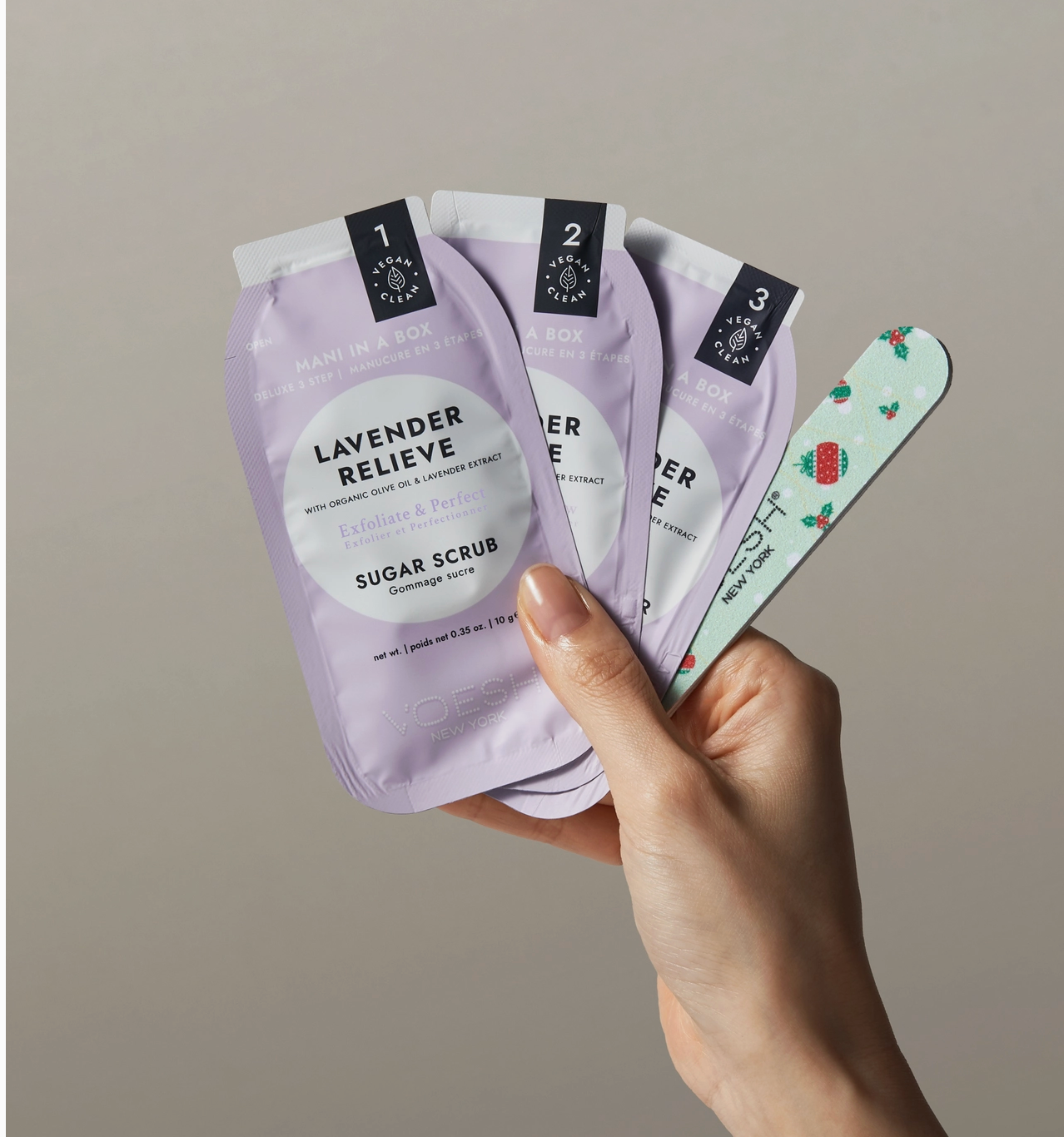 Best For: Dry, Overworked Hands At-Home Manicures Holiday Gifting What’s Inside: 3 Mani Moments Lavender Relieve Kits