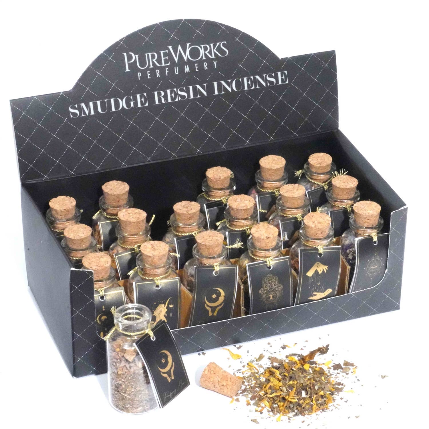 Esoteric Smudge Resin Kit. Glass vial bottles with cork top.
